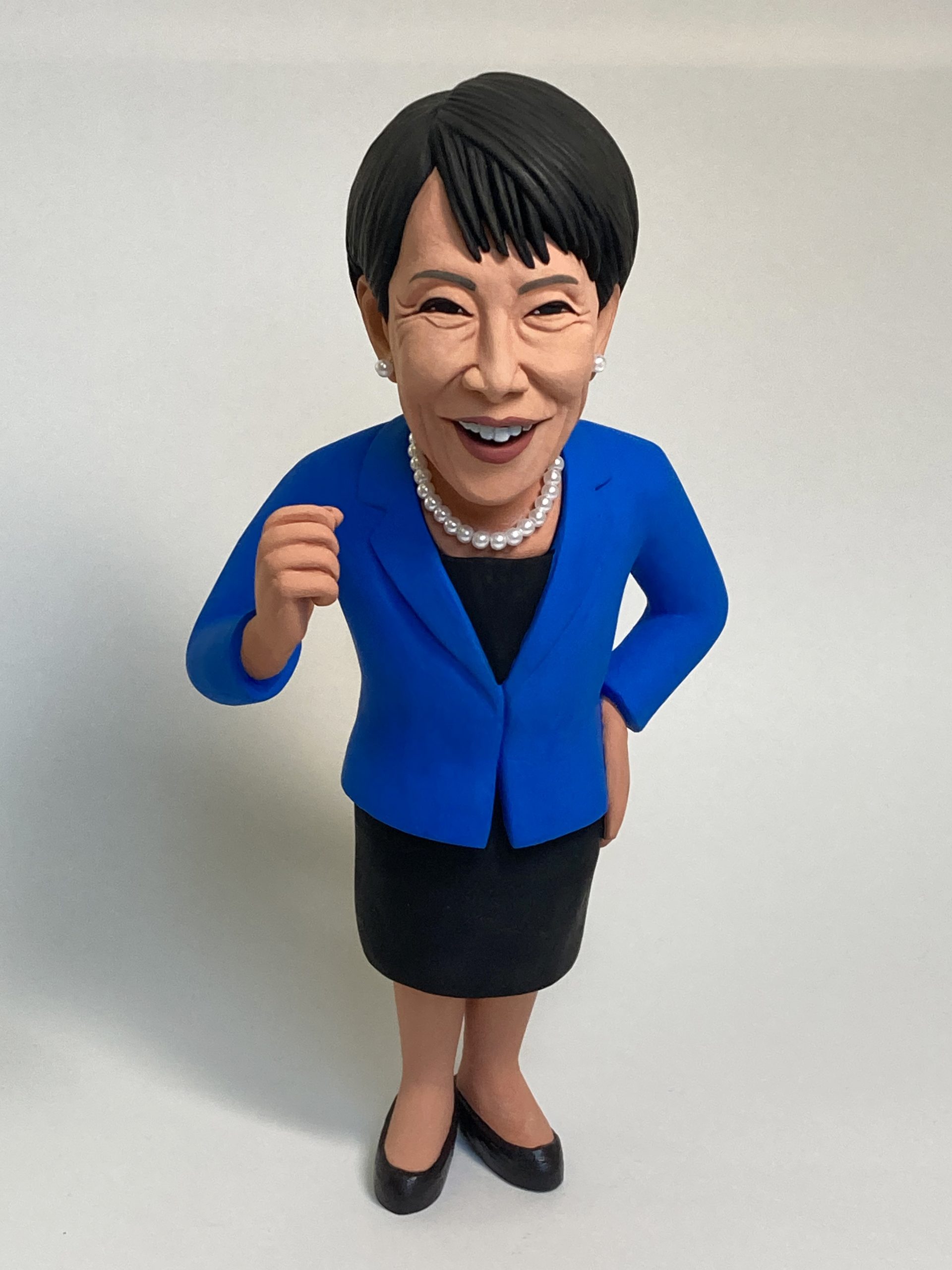 スタジオに設置する場合、普段の立体イラストのサイズ(10〜20cm)では小さすぎるため、30cm大で制作しています。顔の大きさだけでも9〜10cmくらいになるため、しっかりとした骨格を作らなければなりません。プーチン人形以降、以前東京タワーにあった蝋人形館で制作、修理の仕事をしていた夫の杉本英輝が、頭部骨格の大元を制作し、私がボディ制作と頭部の詰め、着色を手がける共同制作を開始したため、制作時間を大幅に短縮することができました。